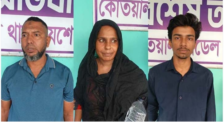 গ্রেপ্তার ব্যক্তিরা হলেন—শহরের আশ্রম রোডের মইন উদ্দিন, তার স্ত্রী সাথী এবং পুলেহাট এলাকার পিয়াস।