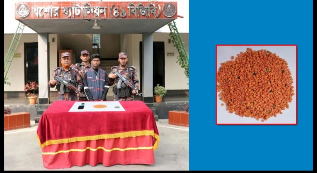 যশোরে বর্ডার গার্ড বাংলাদেশের (বিজিবি) অভিযানে ৩ হাজার ৭৮২ পিস ইয়াবাসহ এক যুবককে আটক করা হয়েছে। মঙ্গলবার বেলা সাড়ে ১১টার দিকে ৪৯ বিজিবির টহলদল সদর উপজেলার দাইতলা বাসস্ট্যান্ড এলাকায় অভিযান চালিয়ে তাকে আটক করে।