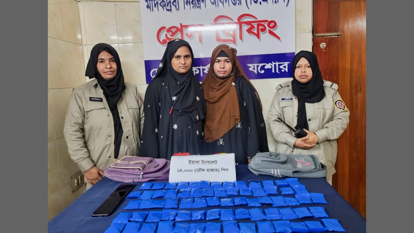 যশোরে মাদকদ্রব্য নিয়ন্ত্রণ অধিদপ্তরের অভিযানে ১৪ হাজার পিস ইয়াবা ট্যাবলেটসহ দুই নারীকে আটক করা হয়েছে। বুধবার সকালে যশোর জেলার কোতয়ালী মডেল থানার রাজারহাট শ্মশানের দক্ষিণ পাশে অবস্থিত ‘বি.কে. সিটি হোটেল অ্যান্ড রিসোর্ট’-এর সামনে, যশোর-খুলনা মহাসড়ক থেকে এই চালানটি জব্দ করা হয়।
